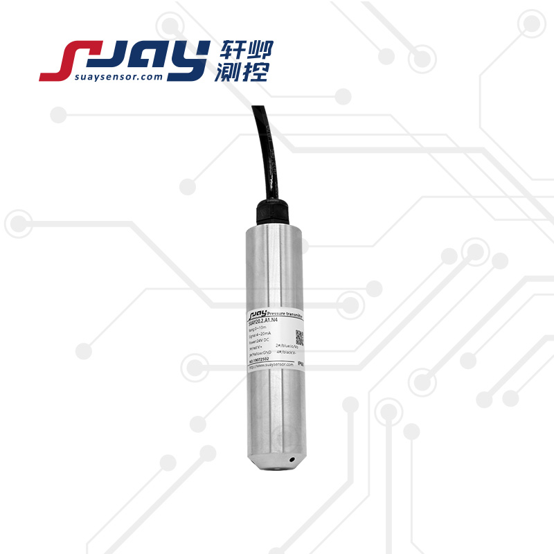 SUAY20液位傳感器 液位變送器 數(shù)字液位傳感器 水位傳感器采用MEMS技術(shù)為核心的高靈敏度硅壓阻感壓芯片,是基于流體靜力學(xué)原理,通過對液體壓強(qiáng)的測量轉(zhuǎn)換為液位高度。該液位傳感器結(jié)構(gòu)可靠,帶通氣導(dǎo)管的液位測量專用電纜及專業(yè)的水密封技術(shù),既保證了產(chǎn)品的密封性,又使得參考壓力腔與大氣相通,從而使該系列產(chǎn)品的使用不受不同地域環(huán)境的限制,既保證了產(chǎn)品的長期穩(wěn)定性,又極大提高了該款液位傳感器的綜合使用精度。全密封潛入式測量,一體化結(jié)構(gòu)和標(biāo)準(zhǔn)化的輸出信號,為現(xiàn)場使用和自動化控制提供了方便。再通過合理的選擇、設(shè)計(jì)接液材料、電纜、護(hù)管等,可對不同介質(zhì)的液位進(jìn)行投入式或插入式測量,適用于城市供排水、污水處理、水池、水文檢測、水庫、河道、海洋等水下液位的長期測量。